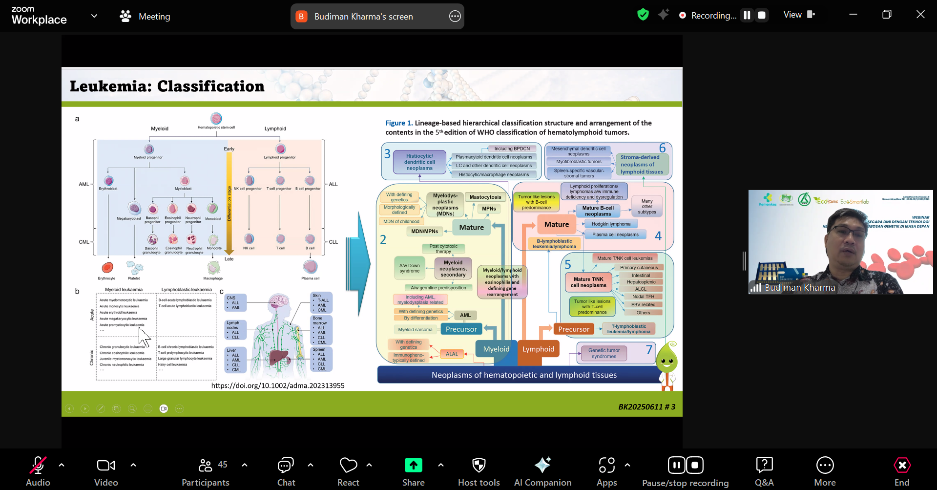 Dalam sesi pertama webinar ini, Budiman Kharma, MD, Ph.D, SpPK (Direktur Rumah Sakit Brawijaya Hospital) membahas pentingnya pendeteksian dini Leukemia di Indonesia, yang jumlah kasusnya terus meningkat setiap tahun. Beliau menekankan bahwa dengan bantuan Hemavision, tenaga media dapat melakukan skrining lebih awal, sehingga intervensi medis dapat dilakukan sebelum penyakit berkembang lebih jauh.